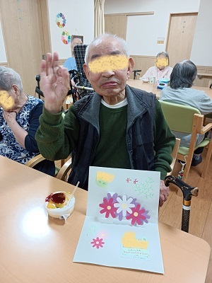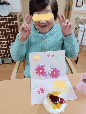 メッセージカードと、お祝いのスイーツを召し上がられました♪